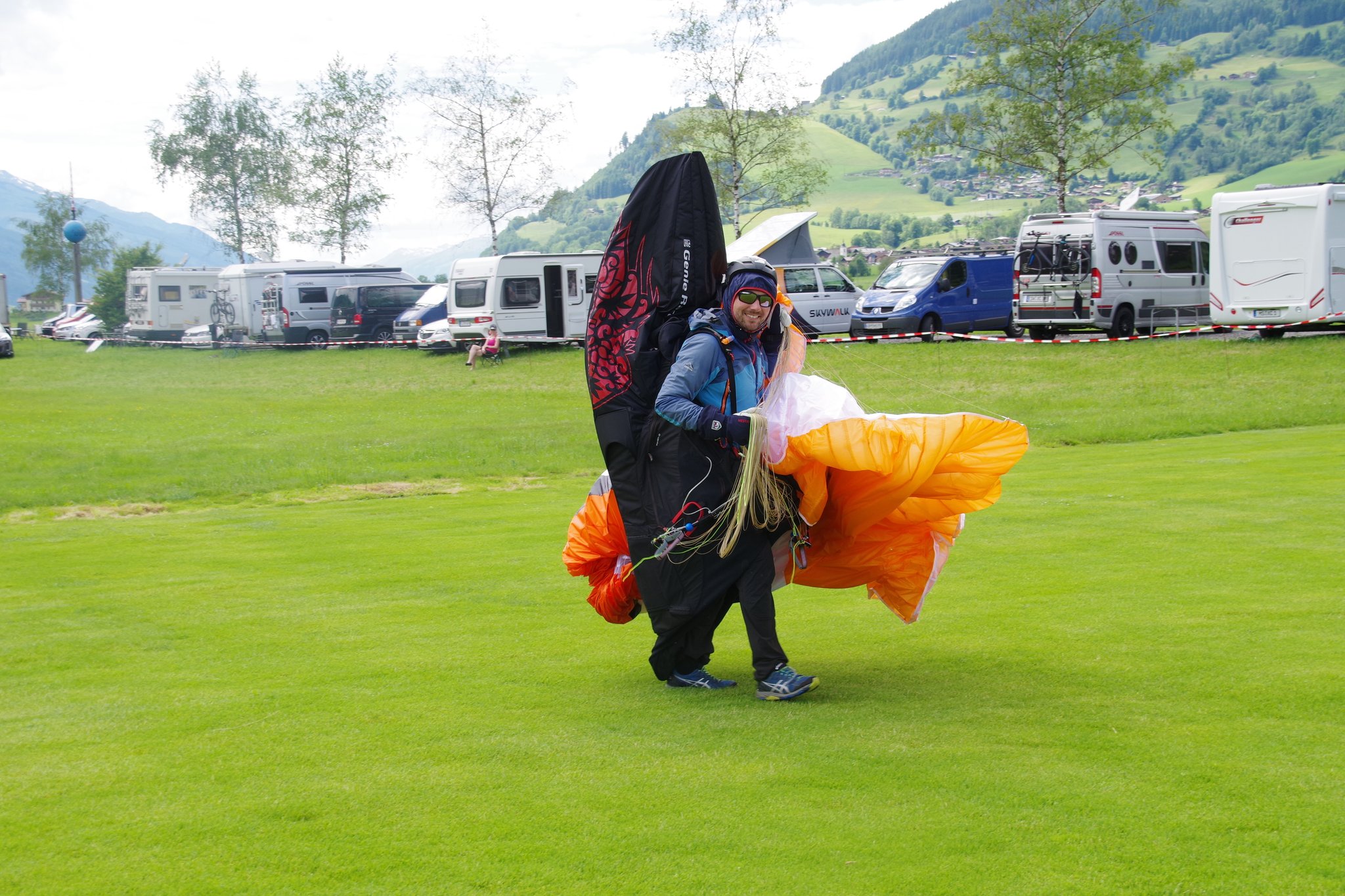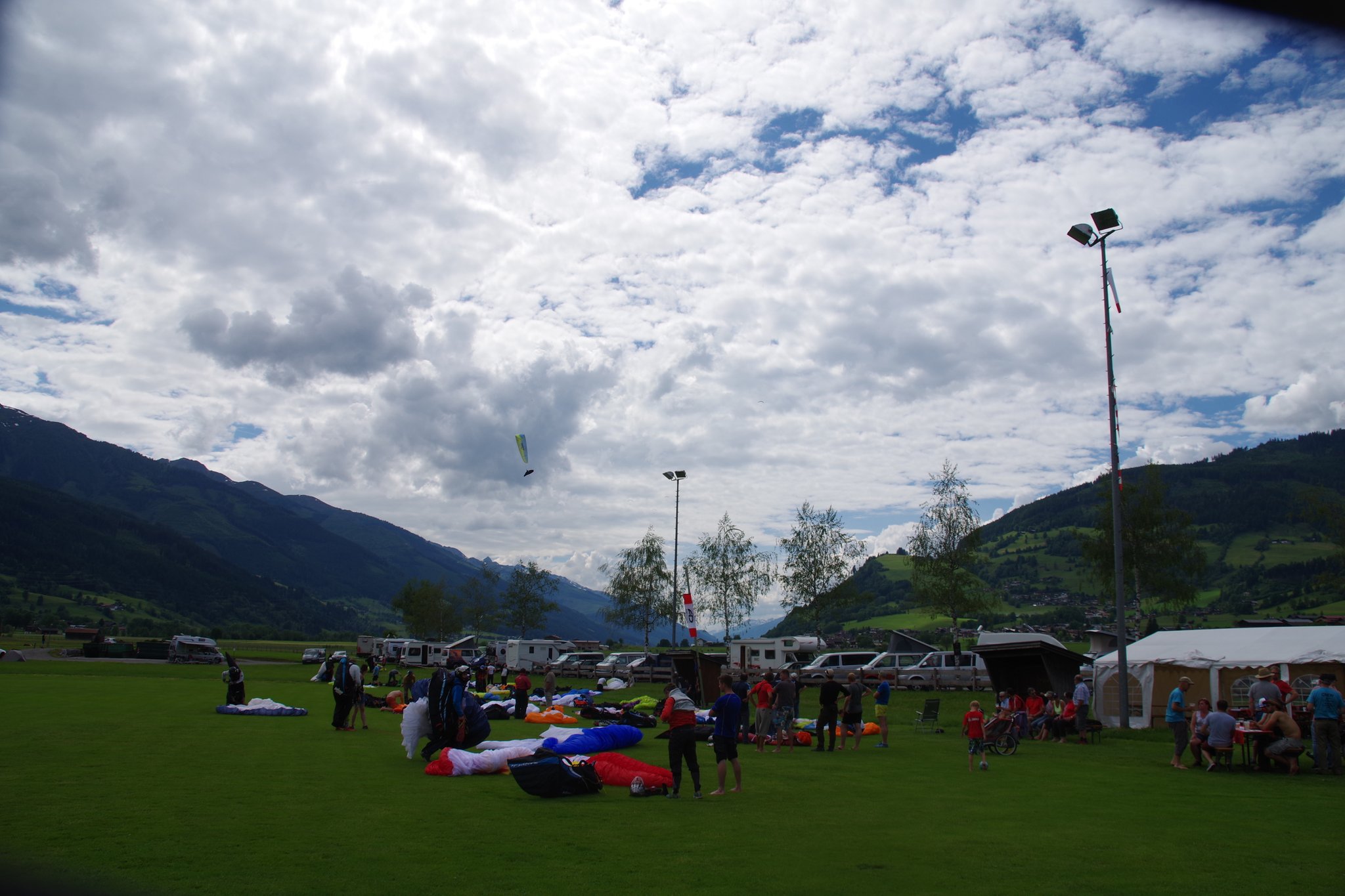 Zur Auffrischung: Im Bereich des Landeplatzes gilt eine Flughöhe von 150m über Grund. Das heißt die Höhe am Hang abbauen und erst unten zur Talmitte (Landeplatz) fliegen.
